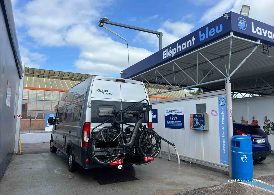 Een hoge carwasch ! Eléphantbleu Om je camper in verschillende programma’s schoon te maken ! Buiten locatie / niet overdekt voor hoge campers. PERFECT !!