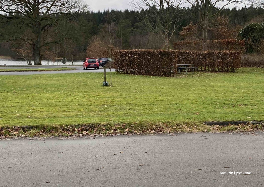 Aparcamiento junto a una carretera principal. Zona agradable. Algo de tráfico. Hay espacio para autocaravanas al otro lado de la calle. Se permiten pernoctaciones, pero no se permite acampar.
