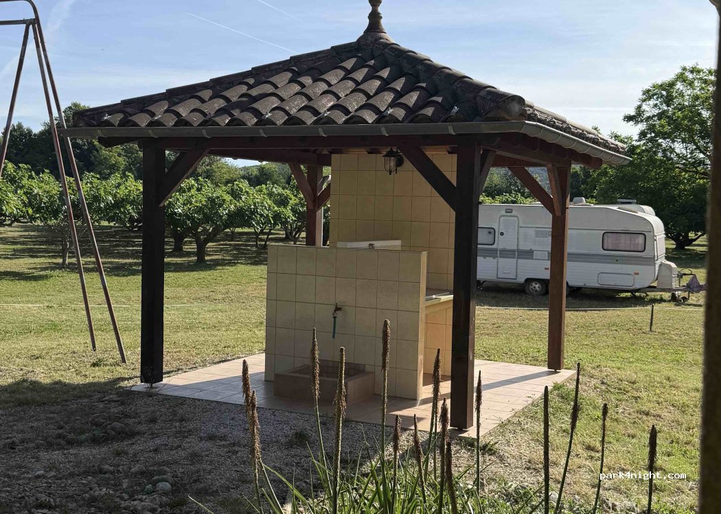 The warmest welcome we've ever received! The owners of this little fig farm are absolutely lovely! Both greeted us and proudly showed us around their little campground. Clean toilets with paper and toilet seats. 1 cool outdoor shower and 2 indoor warm showers. Beautiful, peaceful shaded pitches separated by trees and hedges. Electricity available. One night, 26€, family of 4. Highly recommended!