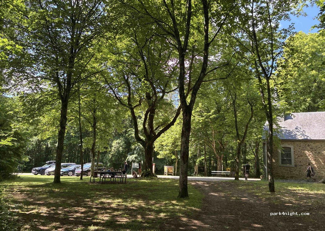 Quiet spot near a small chapel, at the end of an avenue, with a Way of the Cross along the avenue.