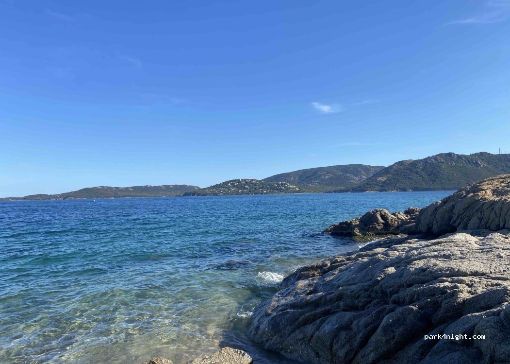 Nous avons passé la nuit ici, nous avons remarqué des gars avec des voitures qui jouaient de la musique forte ou qui venaient des chalets adjacents, mais tout va bien pour le moment.. devant l'accès à la plage de Cala Rossa, vraiment magnifique !