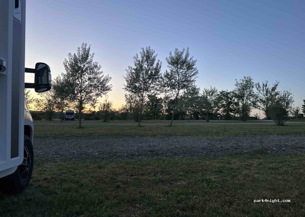 Ein schöner Stellplatz gegenüber dem Campingplatz. Er ist ruhig gelegen, da die meisten Camper einen direkten Zugang zum Wasser bevorzugen. Toiletten, Abwasser, Duschen sowie Wasser/Abwasser des Campingplatzes werden gemeinsam genutzt.