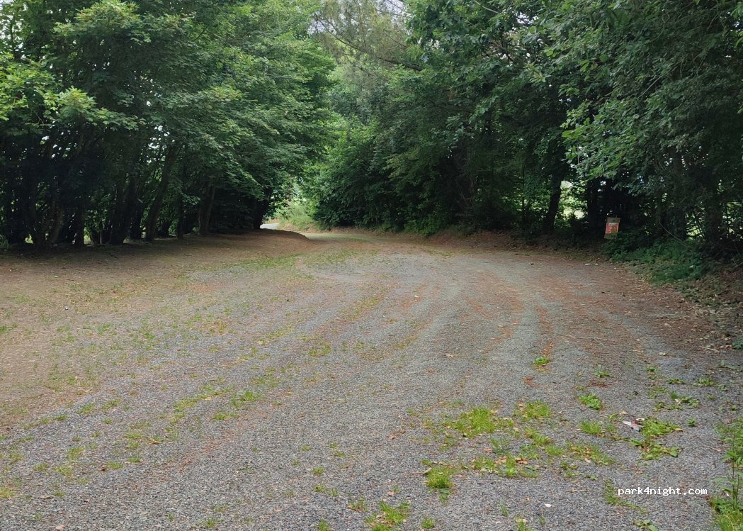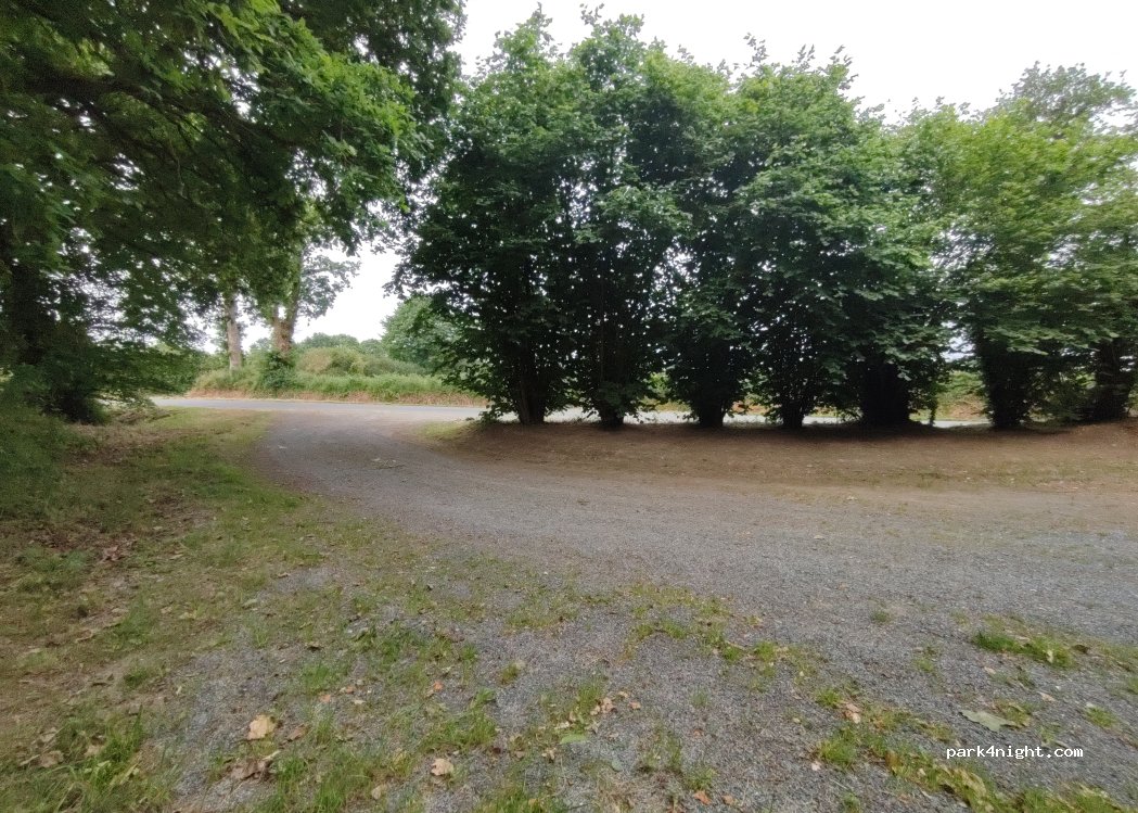 Kleiner, ruhiger Parkplatz in der Nähe eines kleinen ländlichen Dorfes mit einigen Annehmlichkeiten. Zwar nahe an der Landstraße, aber abends ruhig.