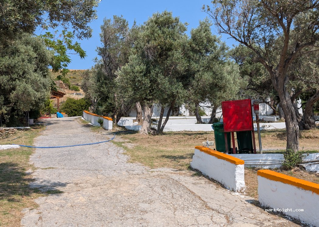 Andros Campsite, a stone's throw from Gavrio Port where all ferries to Andros Island arrive, can accommodate you provided you are in a van or small van. Otherwise, the site is shaded, the welcome is friendly, and the toilets are in very good condition. The campsite also has a swimming pool.