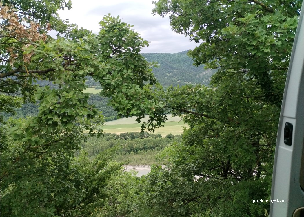Toller Platz an einer kaum befahrenen Straße an der Seite einer Obstplantage und mit Blick auf den Kanal auf der anderen Seite. Wir hatten hier eine ruhige Nacht ind fühlten uns sicher.