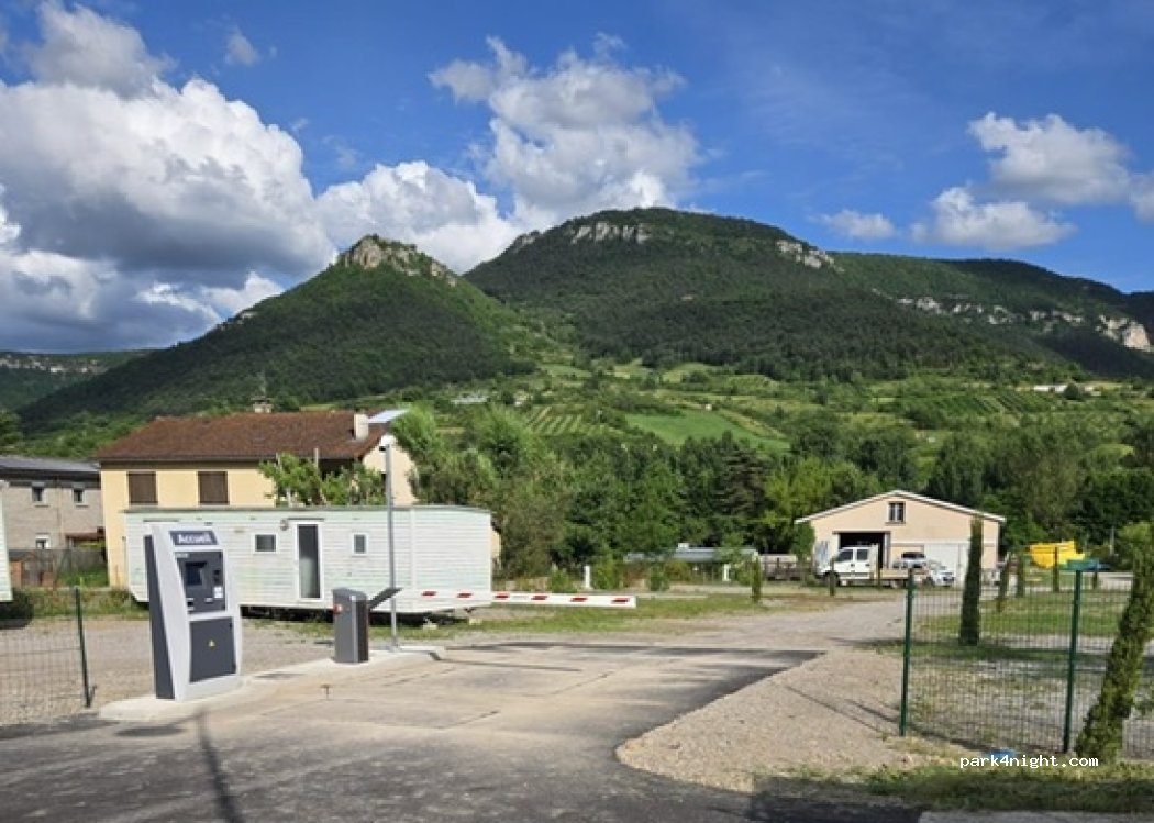 Very easily accessible, the service area is located at the entrance to Rivière-sur-Tarn coming from Aguessac via the D907. Close to all amenities and shops, it offers 18 spacious spaces, all connected to electricity, in a secure area with controlled access.