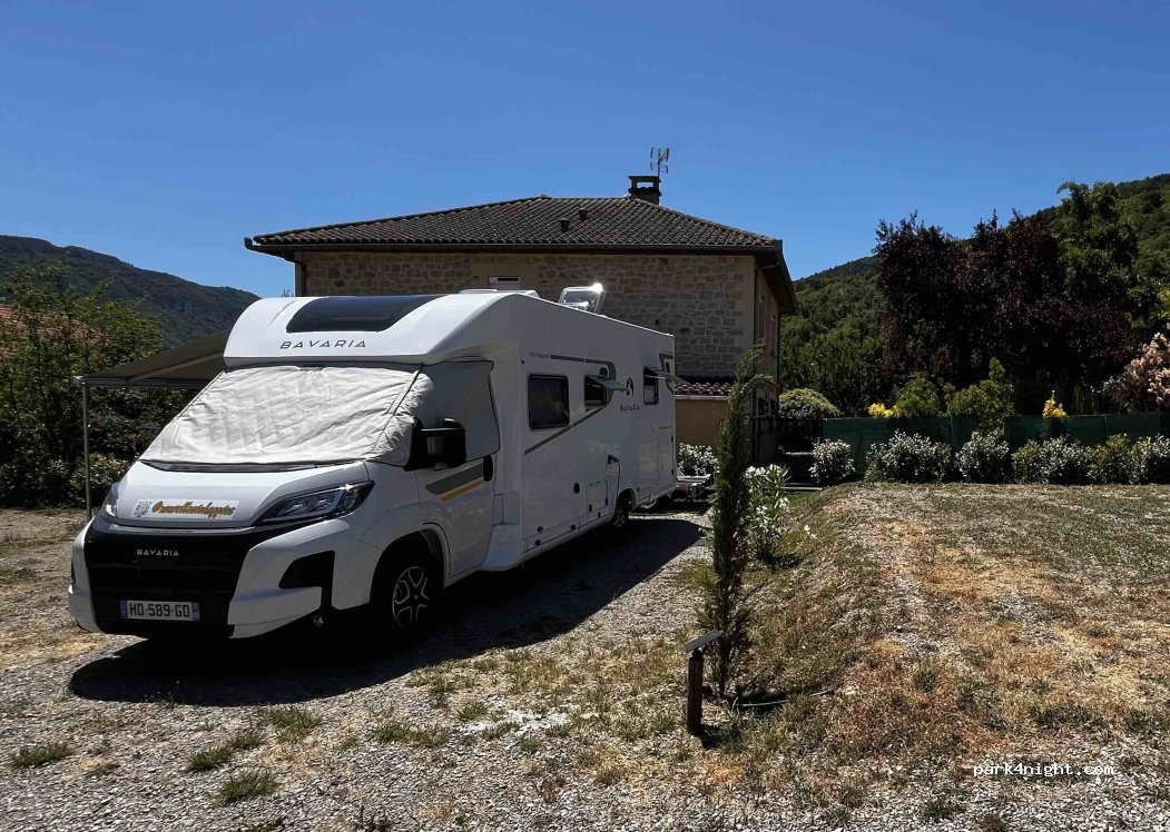 pas de bruit la nuit mais la journée va et vient avec les fourgon canoë carsher etc…camping-car jusqu’a 9m vidage à l’extérieur payante 3 euros en sus des 14,50 d’emplacements dommage pas de borne d’eau pour remplir les bouteilles. Sol gravier pas de pelouse.@nouvelleséchappées