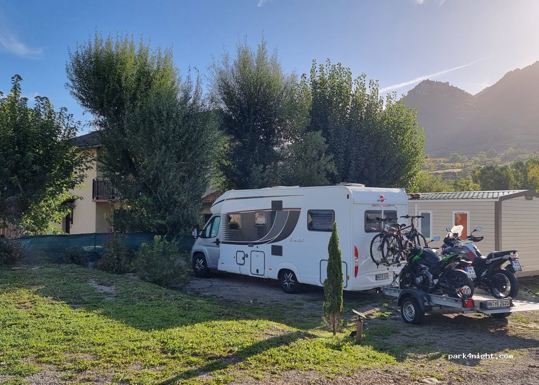 Sehr schön gelegen und ruhig. Über den Campingplatz kommt man auch ans Wasser runter (auch wenn da ein Warnschild hängt). Im Ort haben wir nur den Bäcker (sehr lecker) gefunden und zwei kleine Bars/ Restaurants… mehr scheint es nicht mehr zu geben. Toll für Wanderungen oder Aktivitäten in der Schlucht oder im Fluss… Wasser 100l Kosten zusätzlich 2x3€ der code hatte leider nicht funktioniert.