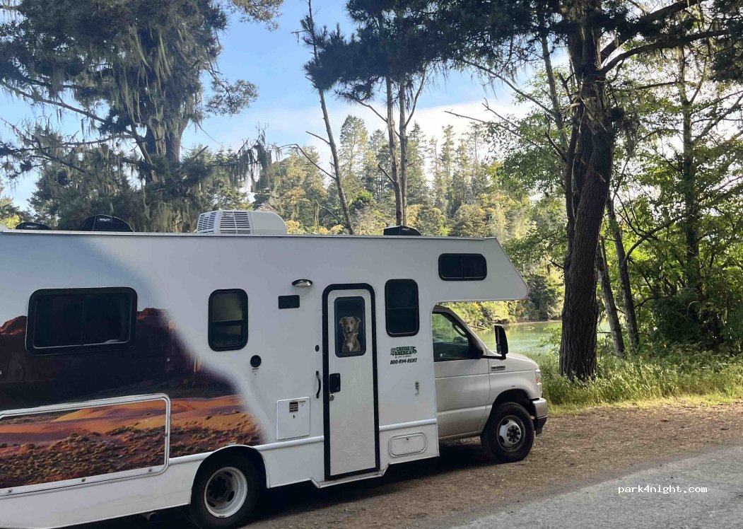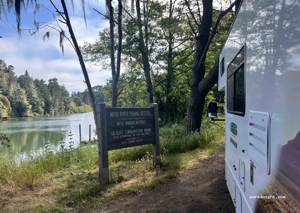 Quiet spot to pull out, bumpy in spots but you can stop on a nice level ground for sleeping, lots of space for a camper van or can probably fit a big rig. Nice and peaceful, on the river, no “no parking signs.” Very minimal traffic. We stayed the night without any issues. No amenities. Has cell service.
