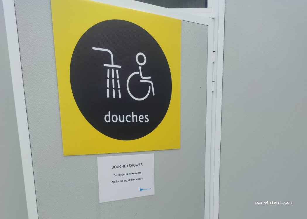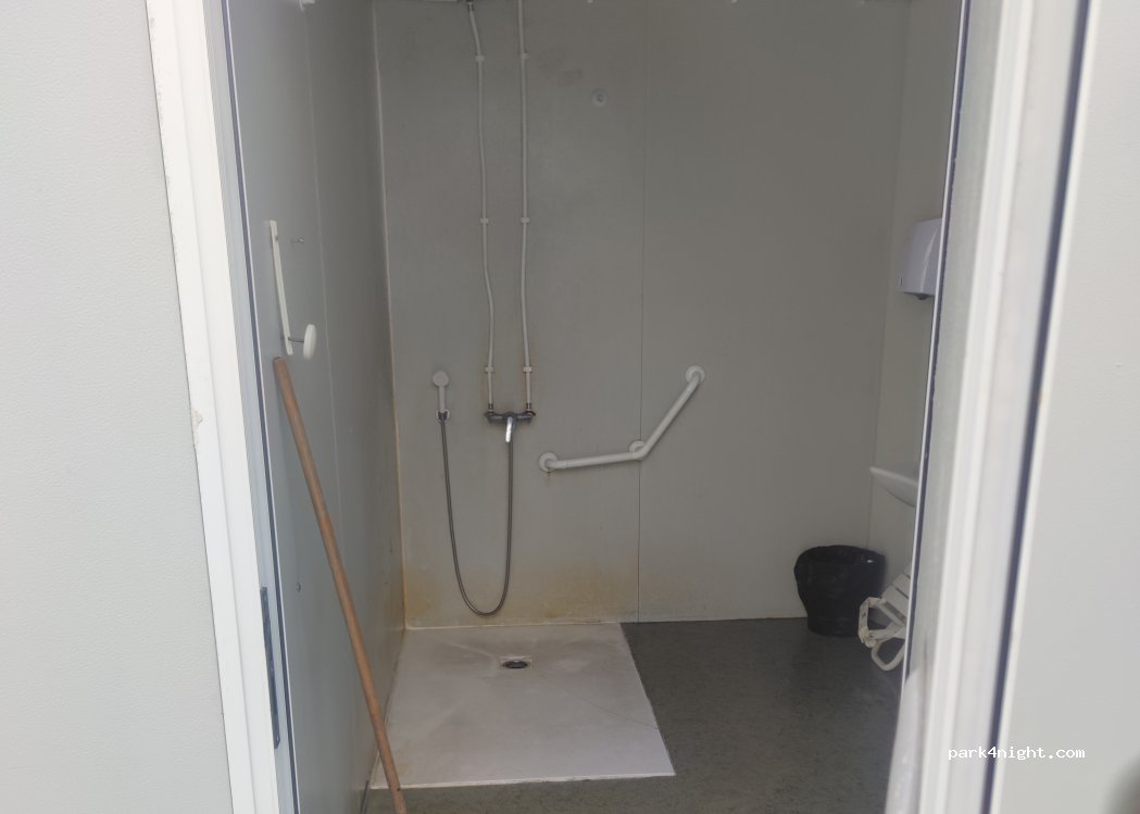 Nous avons pu dormir pour une nuit sans problème en van , peut être un peu plus compliqué en camping car , et on a même eu le droit à de l’eau chaude dans la douche , on recommande