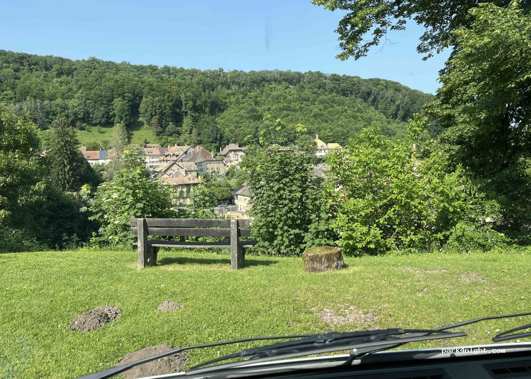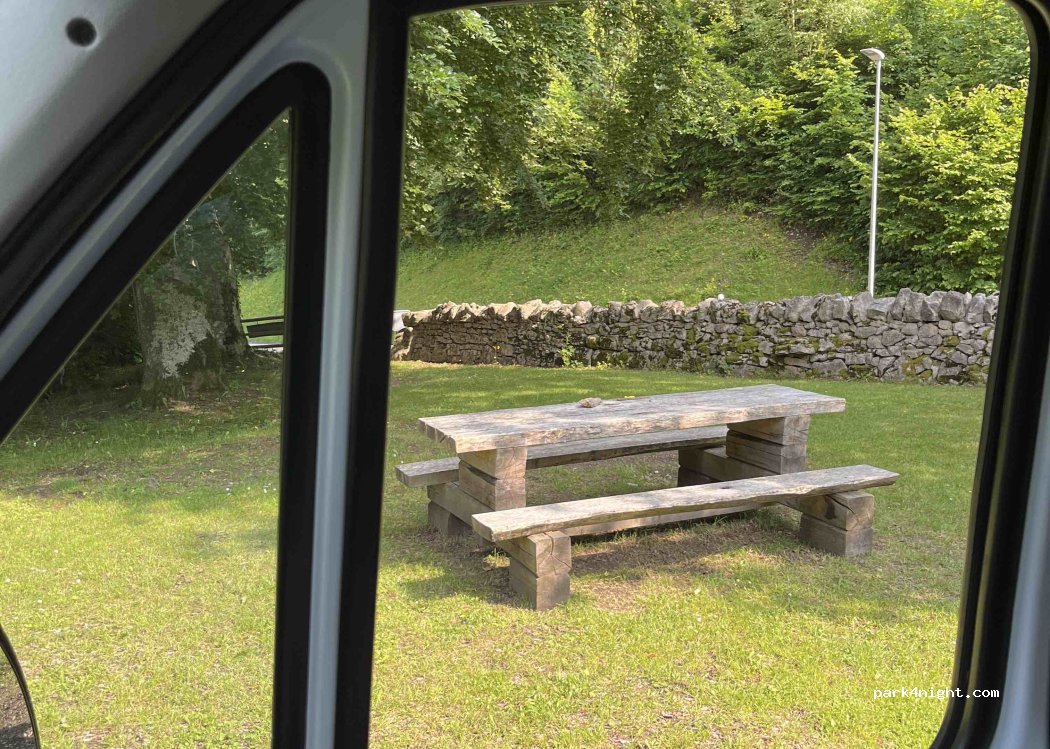 Idéal pour une pause picnic, voir y passer la nuit. Pas d’interdiction affichée. Sauf si manifestation à la salle ou un cantonnement militaire!!