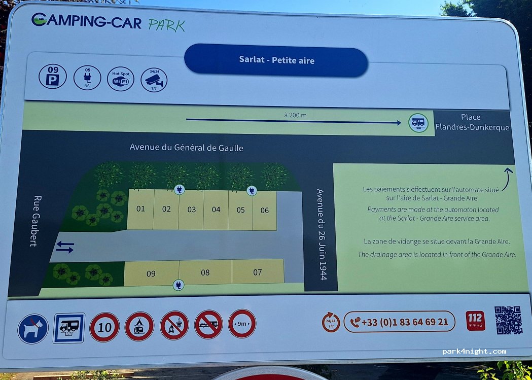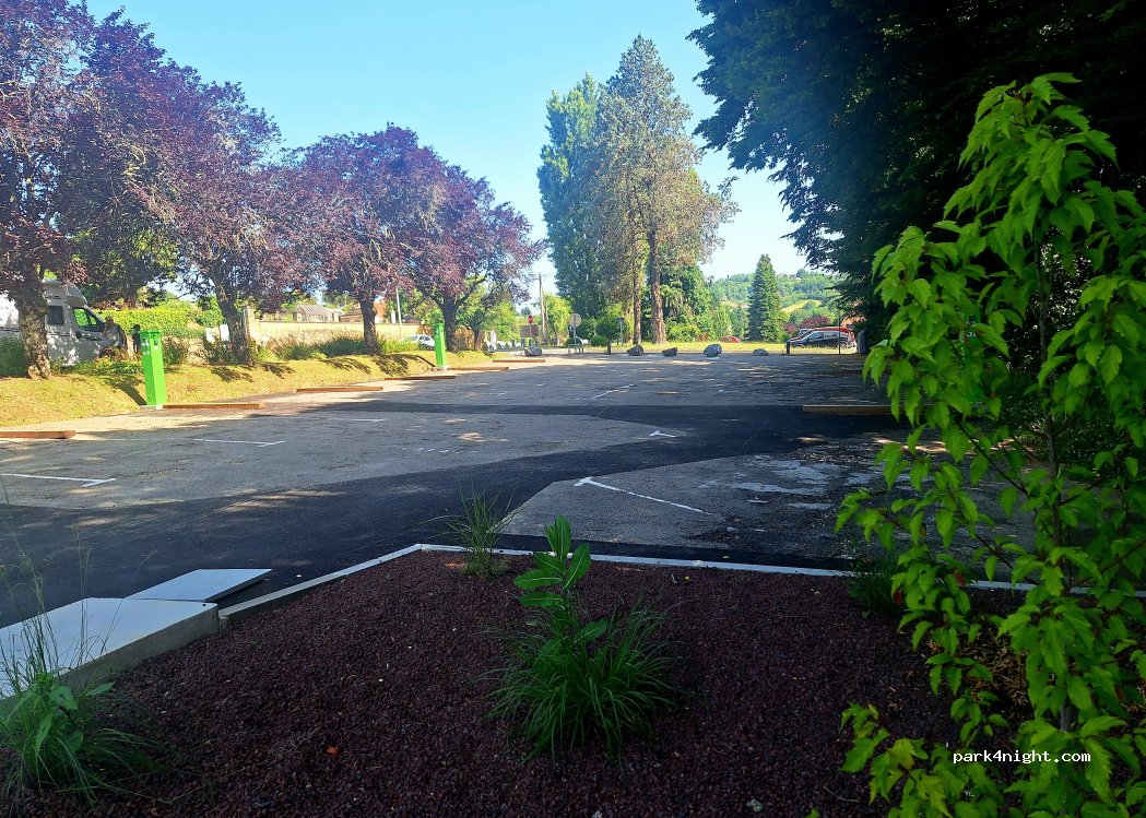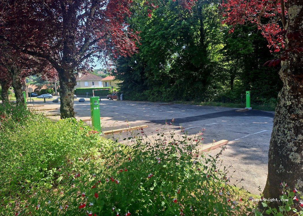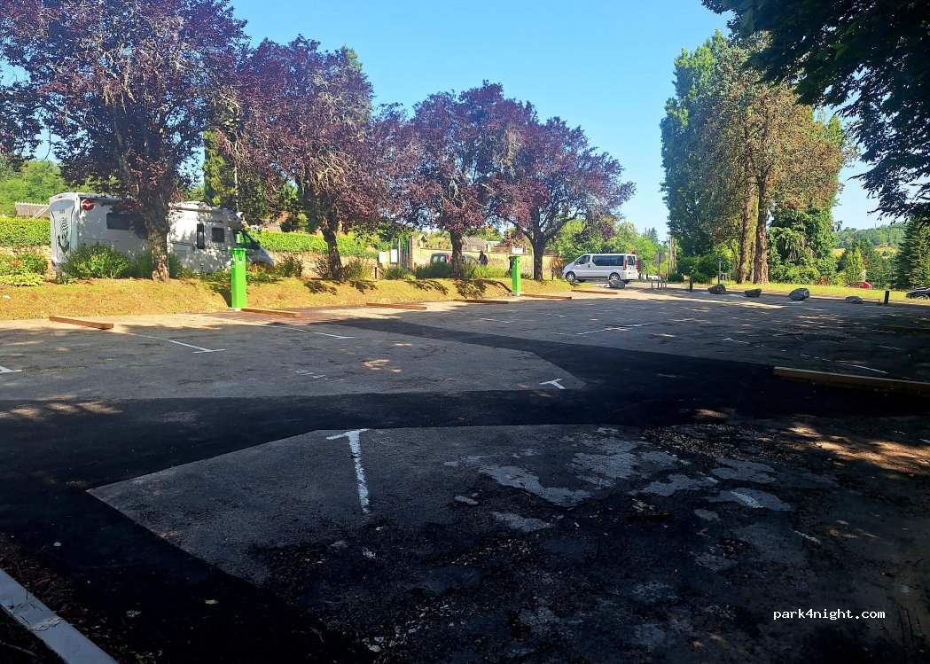 A fuir. en forte pente, mais surtout pas secure. si tous les emplacements sont occupés, vous ne pourrez pas sortir en cas d urgence. cette aire a visiblement été créee pour compléter celle qui est un peu plus haut et ainsi permettre au concessionnaire d encaisser encore plus d'argent.