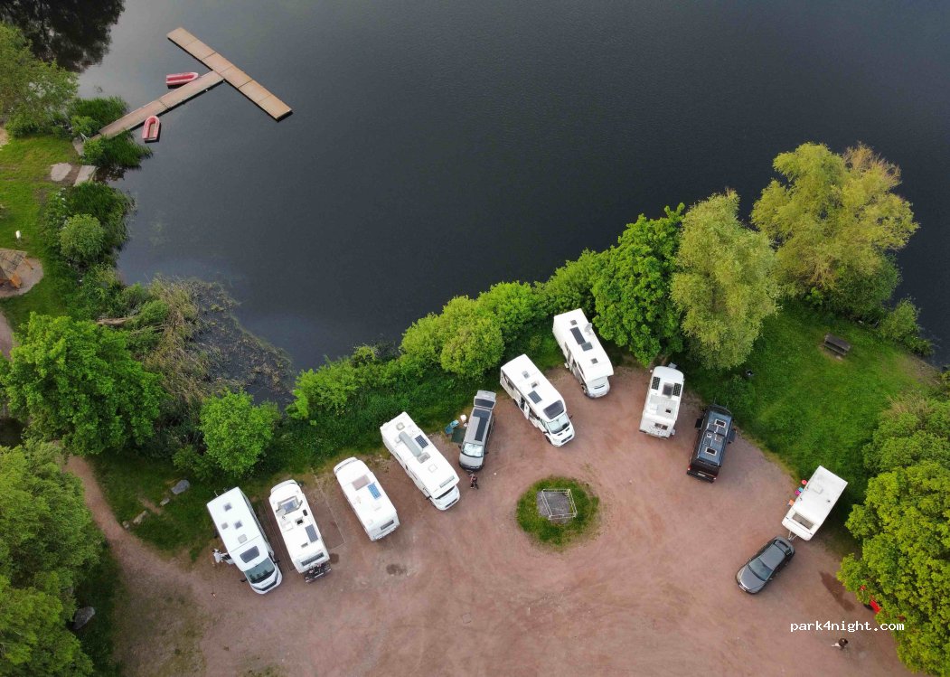 Nice parking next to the lake. Access was a bit tight through the village, but managed without problems with a 7m20 camper. There is a motorcross circuit next door and it was used the whole of Saturday. But it's a free parking, so can't complain. Stayed two nights.