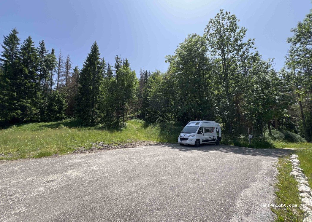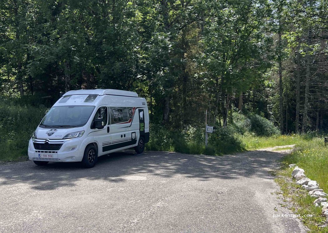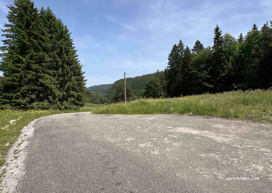 Emplacement pour max 2 vans/camping car. Se trouve au bout d'un cul de sac, terrain plutôt plat. Lieu non fréquenté le soir idéal pour la nuit mais il peut y avoir un peu de voiture la journée car le spot sert aussi de parking pour aller sur le belvédère qui donne une vue magnifique. Merci de respecter la nature