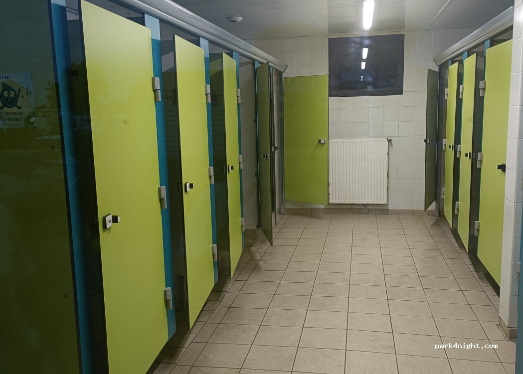 Tarif 18,10 € pour une nuit camping car 2adultes un branchement électrique. Pas de séparation entre espaces camping-car. Sanitaires hommes condamnés donc un seul wc dans la douche handicapé à se partager.