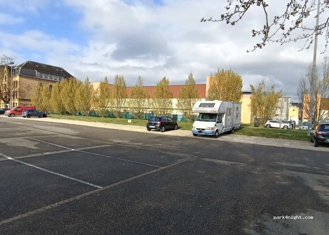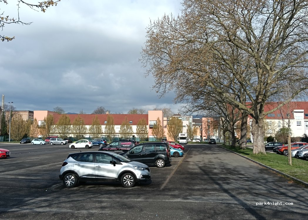 Aparcamiento gratuito 24/7, perfecto para visitar Colmar. Nos alojamos aquí para explorar la ciudad. Es un lugar seguro y tranquilo, frecuentado por muchos lugareños. A 15 minutos a pie del precioso casco antiguo. No hay señalización oficial, pero un pequeño cartel indica que se permite aparcar las 24 horas. No hay servicios, pero es ideal para una visita de un día, o incluso para pasar la noche.