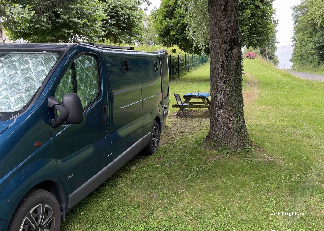 Aire de pique-nique agréable au calme avec poubelle et une table bien entretenue