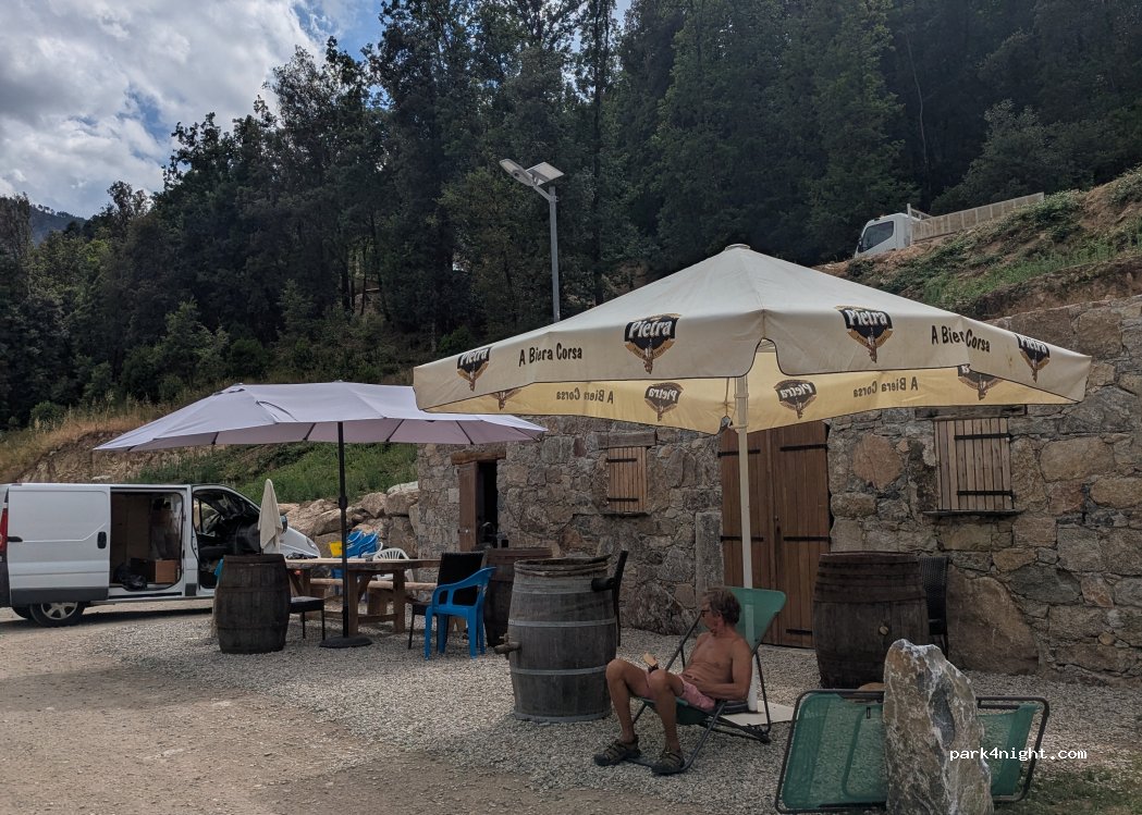 Abbiamo dormito qui una notte con la nostra tenda sull’auto. C’è un servizio igienico con doccia e dal prossimo anno sarà aperto il campeggio che stanno sistemando adesso. I proprietari sono gentilissimi e ci hanno accompagnati in auto (e anche tornati a prendere) al loro ristorante molto buono ed economico a Vivario. Volendo si puó anche mangiare e bere lì senza spostarsi con charcuterie e formaggi artigianali. Consigliatissimo! Super rilassante per una notte nella natura lontano da ogni rumore.