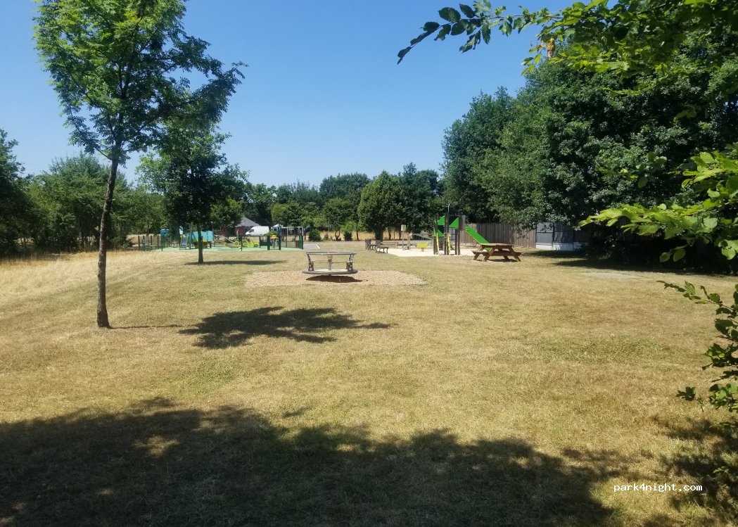 Small parking lot for one night, next to a pretty site on the banks of the Vilaine River and a playground. Public toilets and a restaurant are 100 meters away.
