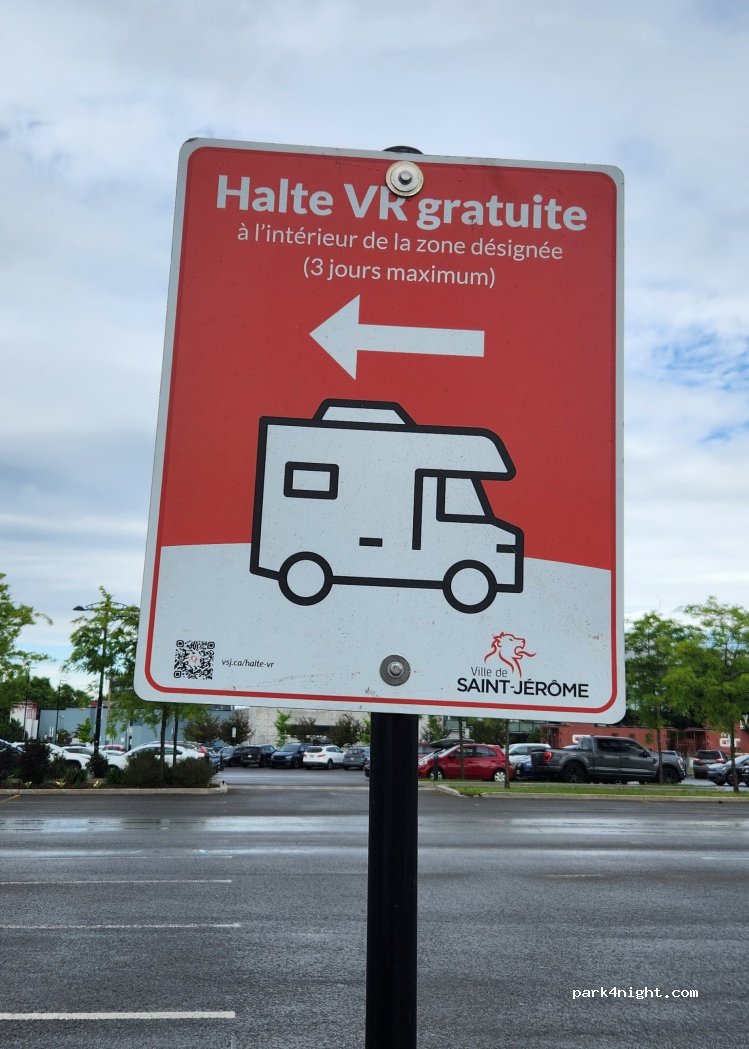 Endroit désigné par la Ville de Saint-Jérôme Québec Canada autorisation de dormir trois jours dans un stationnement réservé pour véhicule motorisé
