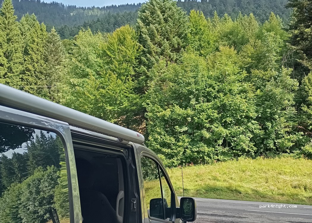 j'ai dormi là une nuit. endroit calme. pas de passage la nuit sur la route. le son des cloches des vaches et de la rivière étaient agréable. la route peut être passante le matin en semaine.