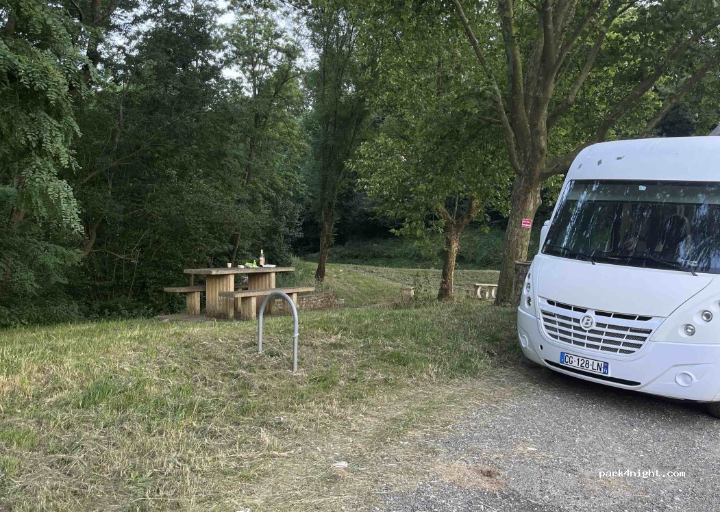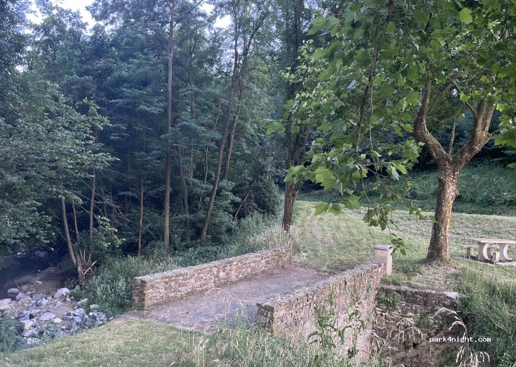 C’est un endroit agréable et ombragé (pratique en été). Je me suis arrêtée pour y manger, mais je ne sais pas si j’y dormirais. Il y a quand même un peu de passage en journée. Cela se calme sûrement le soir venu.