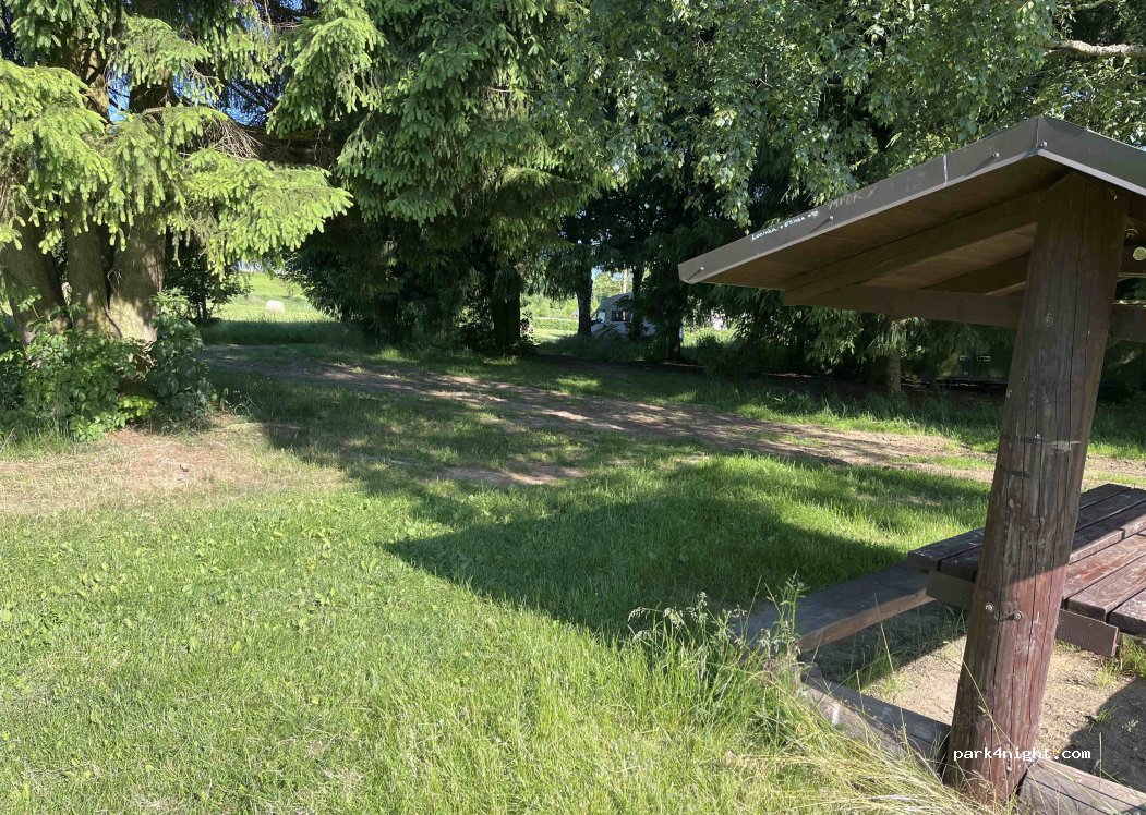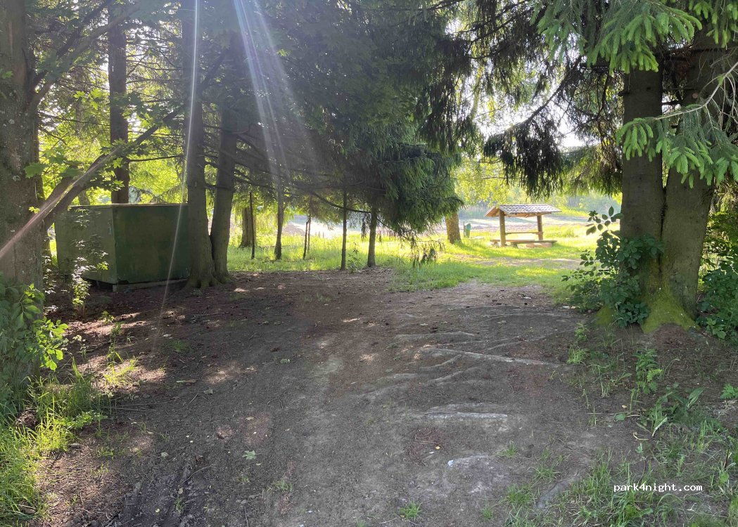 Il y a un parking pour deux voitures et il est possible de se garer près de l'étang. Cependant, l'étang est actuellement à sec et en cours de rénovation (2025). Le village abrite une épicerie, un café et une aire de jeux. L'endroit est propre et calme, seuls les propriétaires de chiens et quelques tracteurs passent. Nous n'avons pas été mal vus par les habitants.
