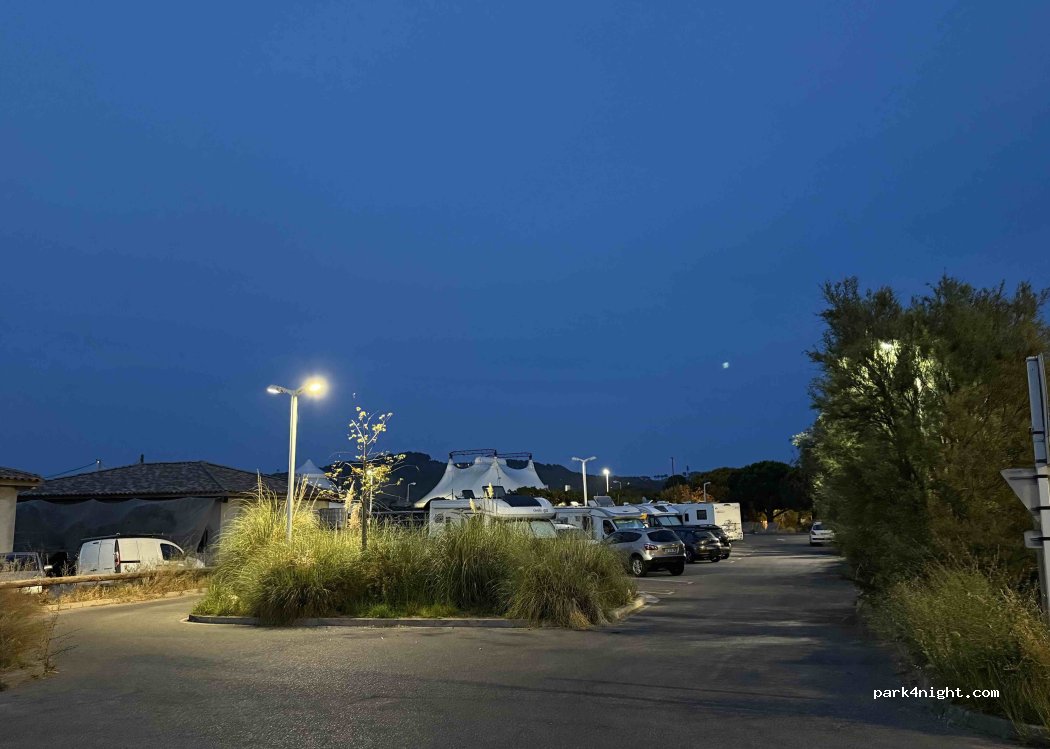 Abbiamo passato la notte tranquilla con altri 3/4 camper posti lunghi anche sopra 7 mt senza sbarra. Consigliato.