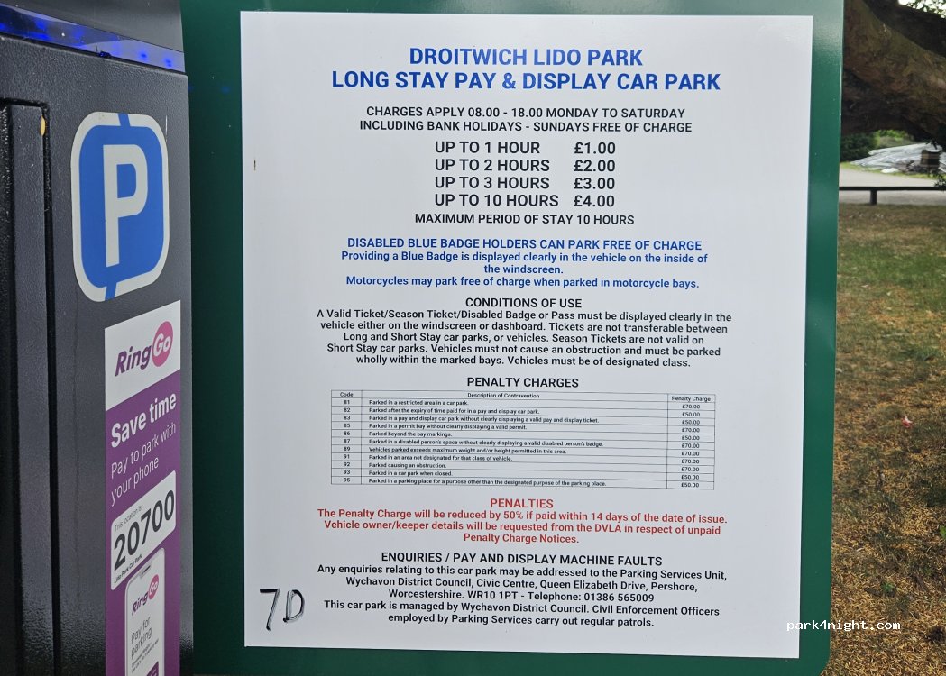 Perfect stop off for a “feel safe” stay. Alongside a public park, toilets, coffee shop, and lido that you can pre book to swim at. Sometimes teenagers arrive with loud music, but have caused me no trouble. Car park isn’t all sloped as described in originally listing, there is an additional car park up the slope which is flat.