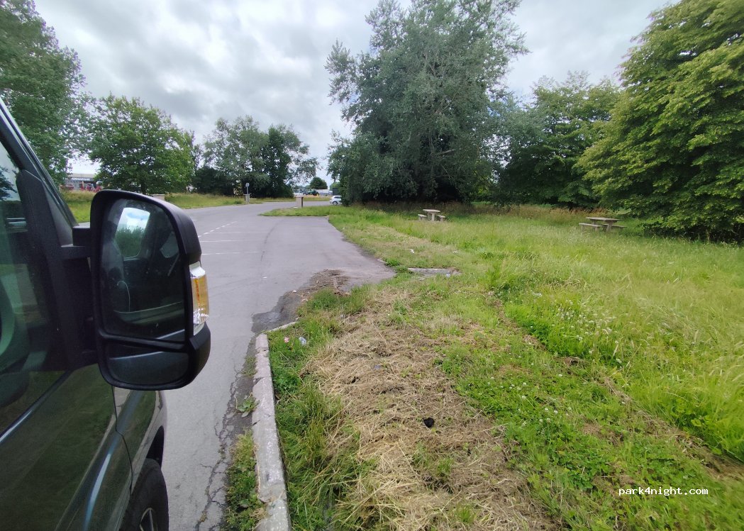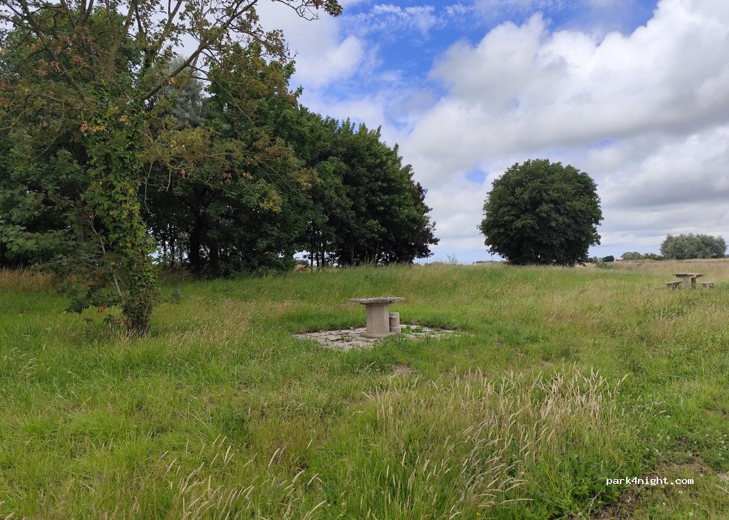 Kleiner Rastplatz mit Picknicktischen, sonst nichts.