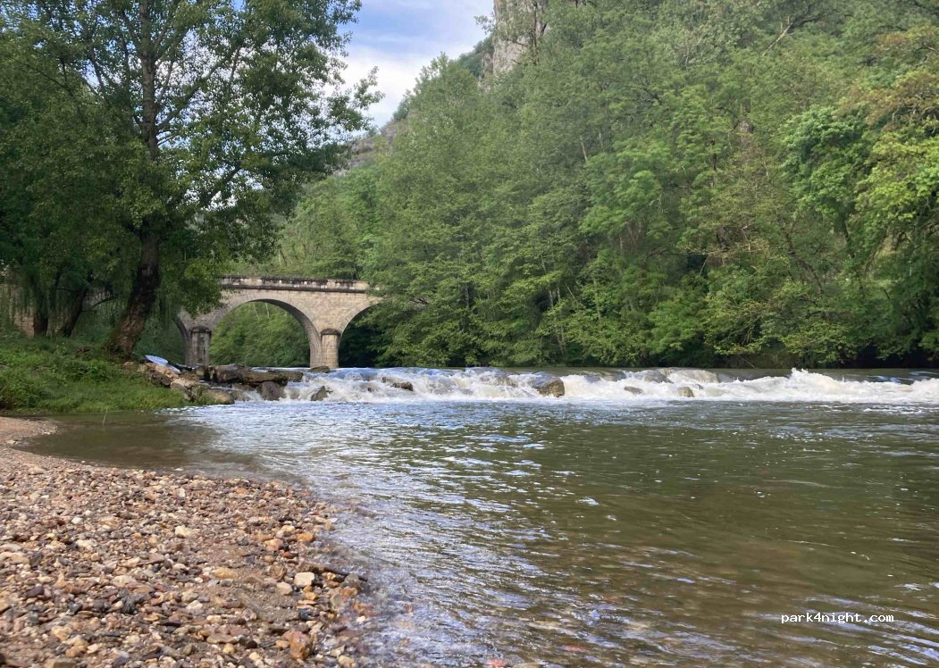 super spot près de la rivière et au pied des falaises. emplacements sur le camping qui est fermé en cette saison mais possibilité de s'y installer. pas de services. terrain arboré les pieds dans l'herbe. super balade juste à proximité "le château des anglais" au pied des falaises.