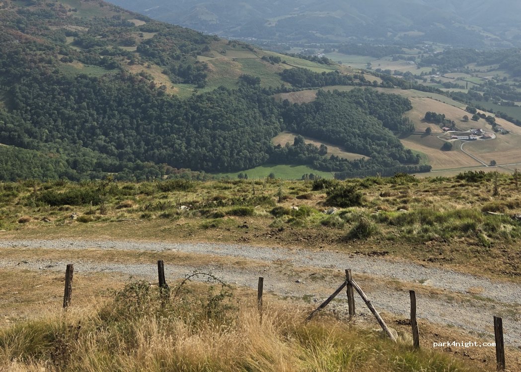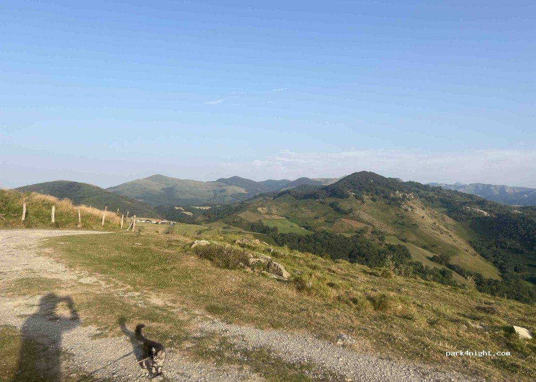 Super spot, calme et plat avec magnifique vue. Le soir un fourgon est venu déposer 3 personnes pour un départ de parapentes et nous avons eu une visite de chevaux en liberté curieux mais qui ont fini par passer leur chemin.
