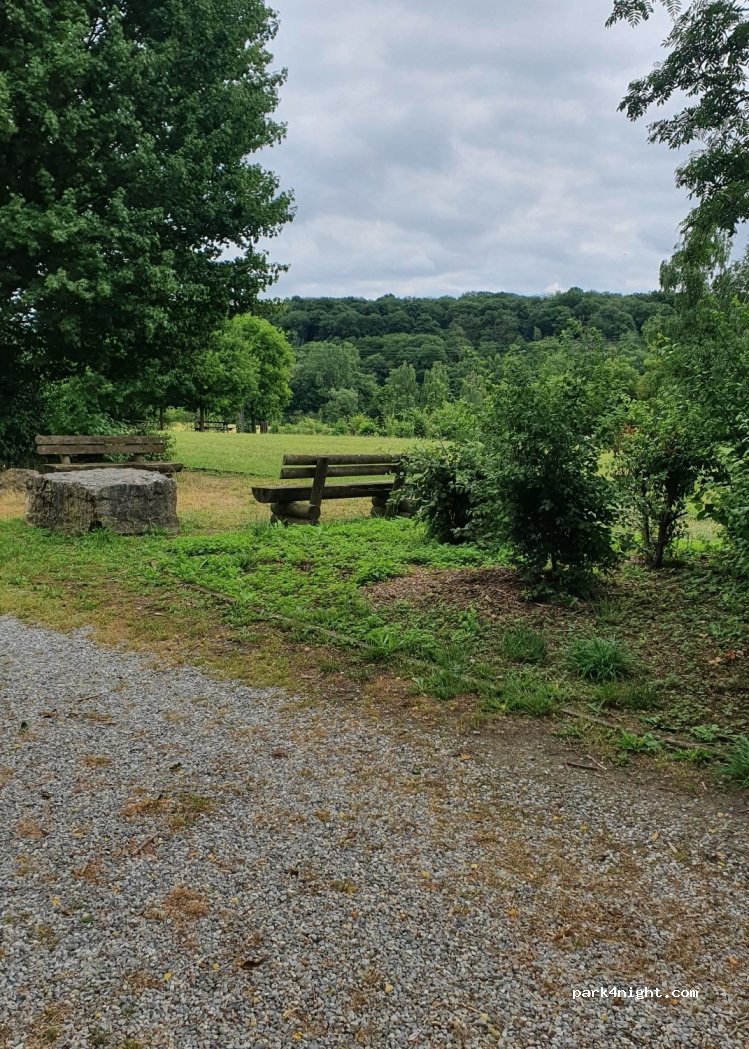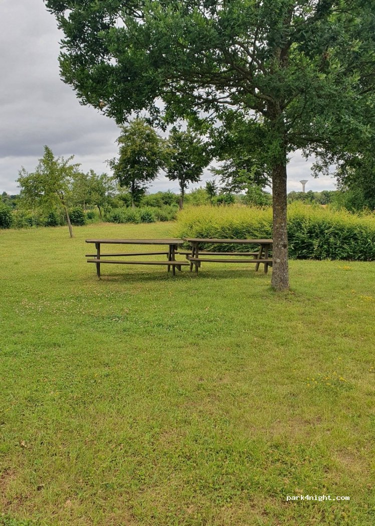 Aire de picnic sympa, places pour 5 voitures environ, à proximité d'une maison tables de pic nic et bancs. ok pour un arrêt
