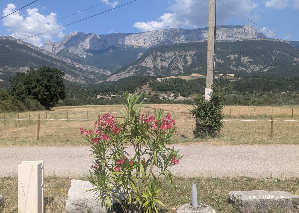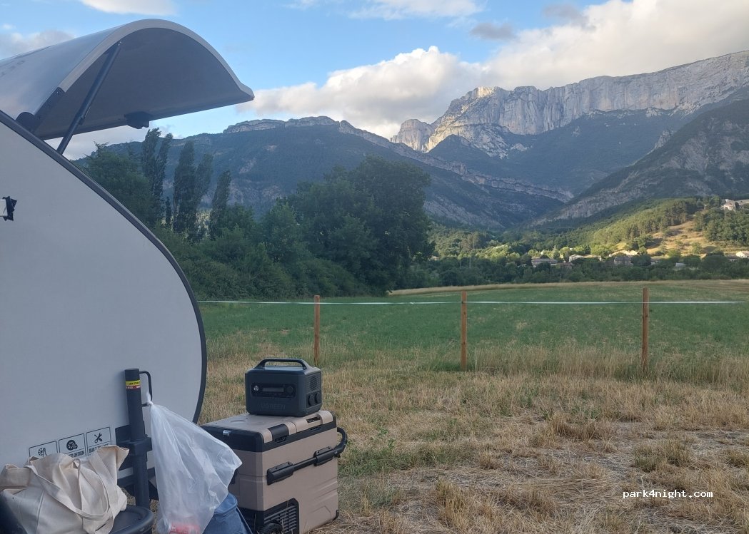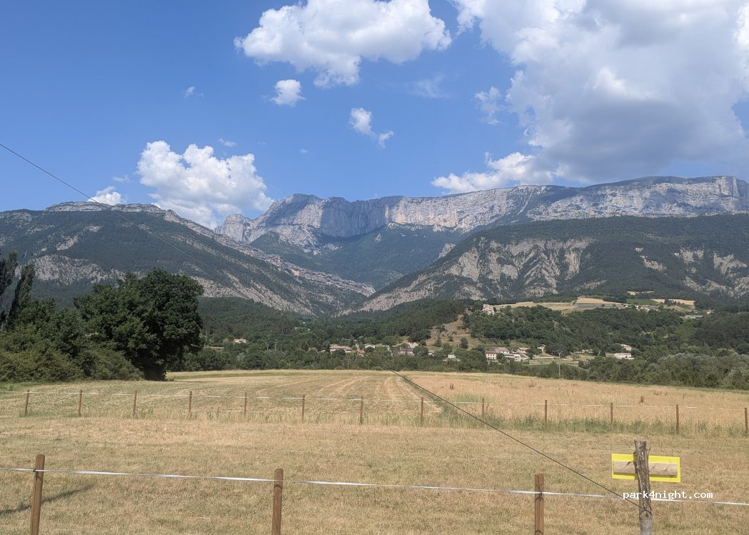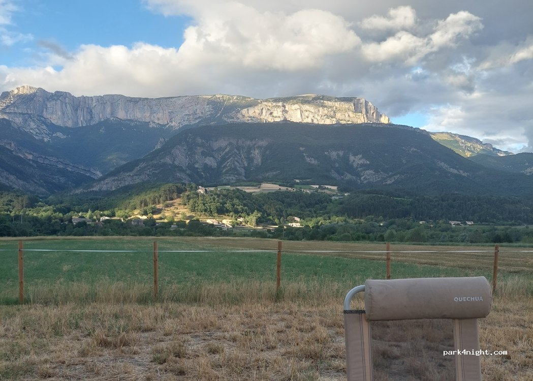 Nous avons été très déçus par cet emplacement. 5€ pour seulement un terrain nu sans ombre. Pas de poubelles. Rien à part une immense quantité de mouches. Lorsque nous nous sommes rendus au marché de die le lendemain pour acheter qques produits au propriétaire , il s'est montré assez désagréable. Malgré tout ses produits sont de très bonne qualité et la vue de l'emplacement est très belle.
