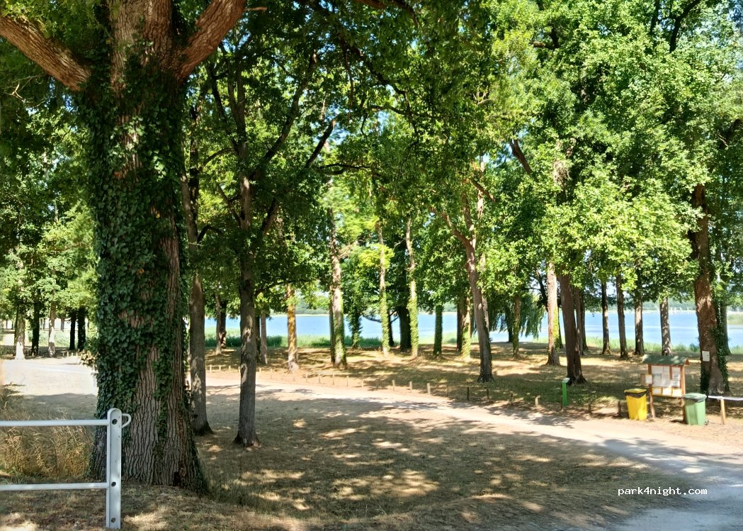 passé une nuit, stationnement à l'ombre sous les arbres. vu sur l'étang on peut s'y baigner. dommage de ne pas avoir d'autres services