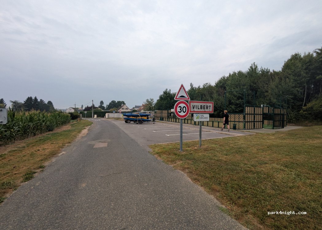 Small pull in at the edge of the village and adjacent to a sports area. Ideal for an overnight stop and only just beyond Paris. We are travelling with a dog and could let him play on the grass beside us. It is beside a single lane one way road but with very little traffic. We slept well in a roof tent!