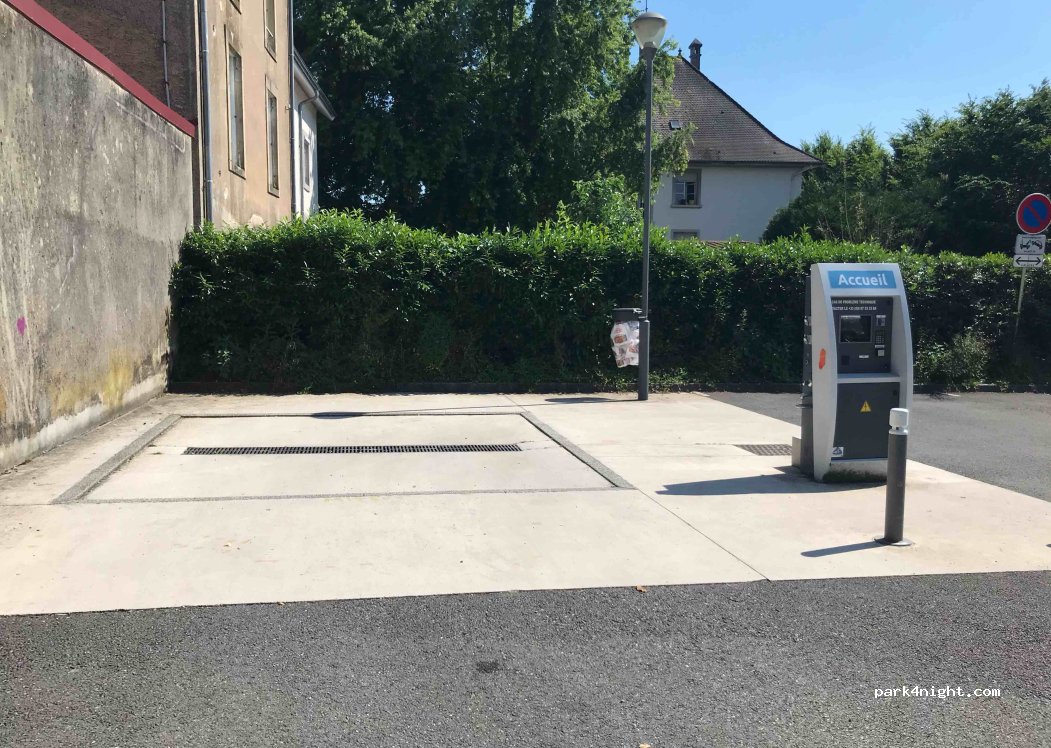place super large gratuite et proche du centre ville service payant mais pour nous pas de soucis car on en avait pas besoin. superbe petite ville, nous avons visité le musée Peugeot vraiment très bien et une brasserie à l'intérieur (prix correct et plat super bon et copieux )