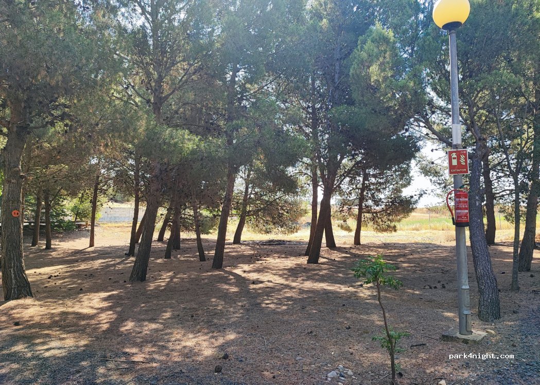 Camping onder pijnbomen. Als het heet is vast prettig, nu met de harde wind en schaduw ook fris. Vanaf begin juli nieuwe eigenaar (denk dat t al een camping was). Sanitair schoon, warm water en wc papier. Supermarkt en Tudela op fietsafstand (klein stukje grote weg, daarna fietspad).