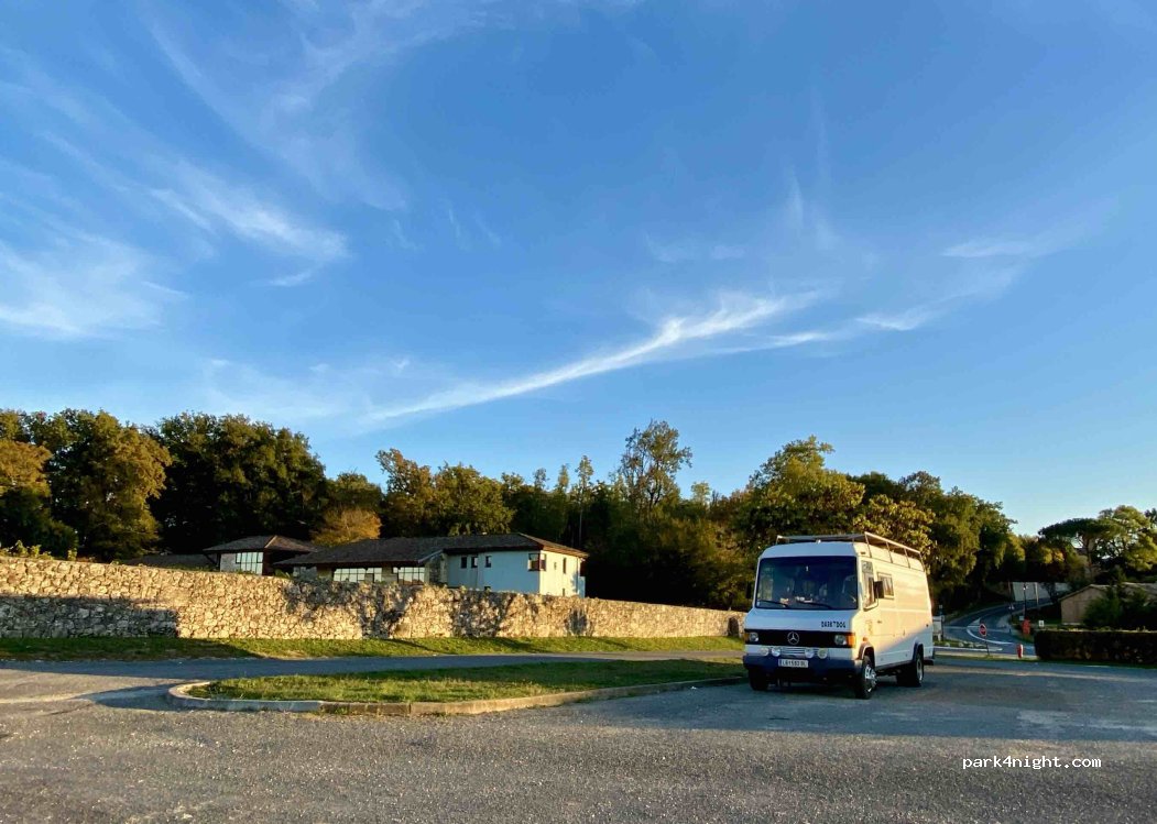 We visited the Chateau Monbazillac which was very nice. €12 which included a little taste of wine. It’s owned by 50 winemakers in a co-operative. Then had a quiet night in the carpark opposite, with one other camper. Beautiful views to wake up to. We didn’t hear any road noise. Public Toilet in the village.