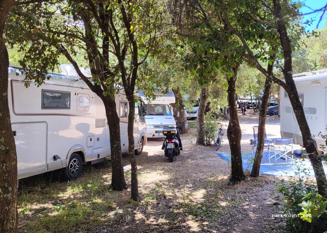 Le spot est bof . Les sanitaires sont moyens et c’est extrêmement bruyant : entre le restaurant qui ferment au delà de 24h et les multiples chiens aux alentours qui aboient toute la nuit . Sinon le restaurant est excellent et l’accueil aussi. Places sous les arbres agréables. Il faut venir hors saison et avec des boules Quiès ...