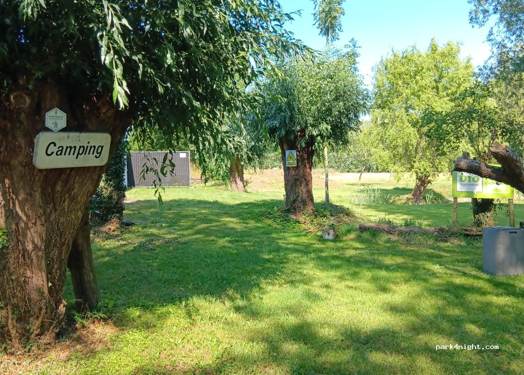 Sie können Ihr Zelt auf der Wiese am Teich oder am Gebäude aufschlagen. Entlang der Straße sehen Sie einen Parkplatz mit Fässern und von dort aus den Teich. Um auf der Wiese hinter dem Teich zu zelten, fahren Sie die kleine Straße zwischen dem Teich und der Weide des Bauern hinauf.
