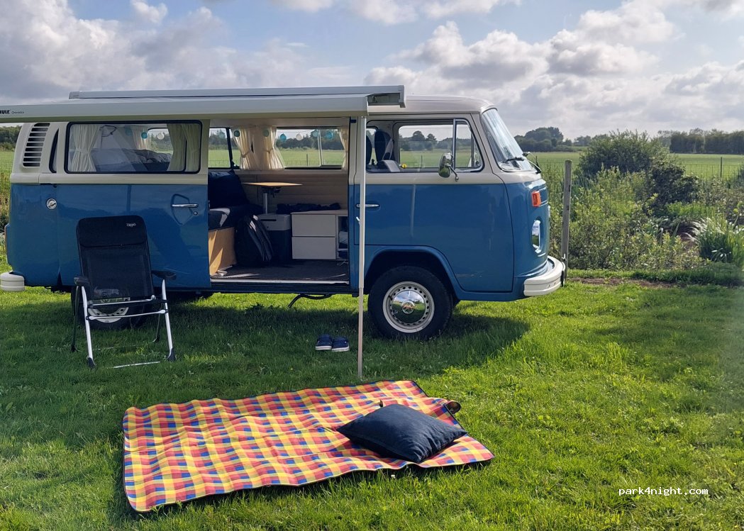 Ik heb een heerlijke overnachting gehad in mijn 4x4 met daktent. Mooi uitzicht over de vijver in de tuin ook had ik de plaats helemaal voor mezelf. De eigenaren waren super enthousiast om me te zien en heel behulpzaam. De twee honden kwamen me ook vrolijk begroeten. Het is heerlijk rustig hier, veel vogels gezien en sochtends zag ik zelfs een damhert op het veld voorbij komen.