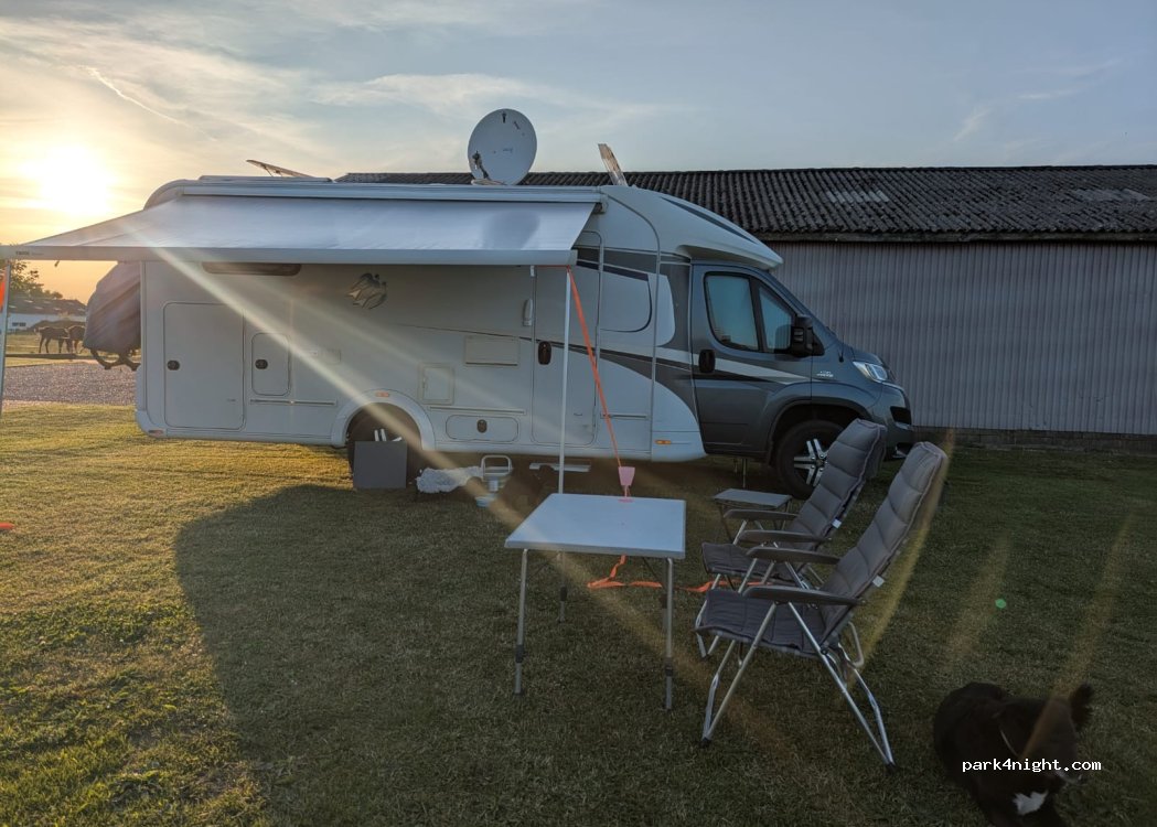 Auf diesem Stellplatzes haben wir uns wohl gefühlt. Es ist ausreichend Platz auf einem sehr gepflegten ebenen und festen Rasen. Die Aussicht auf die Weite der Landschaft macht den Stop auf diesem Platz zu einem Erlebnis. durch den freundlichen Betreiber Rene' und seinen beiden Hunden wurden wir am Morgen sehr freundlich begrüßt. Hierher kommen wir sehr gerne wieder.