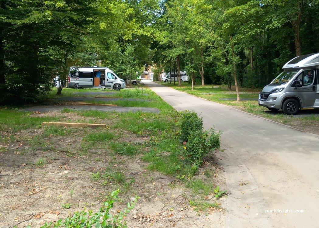 Aire détenue par camping Car Park qui comptera 57 places une fois que celle-ci sera finie. Actuellement en travaux donc seules 10 places sont accessibles. les sanitaires sont accessibles avec la carte Pass'Etape ainsi que l'eau au niveau de l'aire de vidange. Très proche du centre ville et juste à côté du parc , cette aire très prisée et il vaut mieux réserver sa place à l'avance pour être sûr.