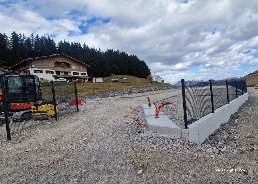 Je confirme que le site est désormais géré par CCP (18,00 la nuit + taxe de séjour). Il n’est pas possible actuellement d’y effectuer uniquement sa vidange et, par arrêté municipal du 15/12/2025, le stationnement en dehors de cet aire est interdit… Le terrain est effectivement stabilisé mais la plupart des camping-cars qui stationnent sont obligés d’utiliser leurs cales pour être à niveau !