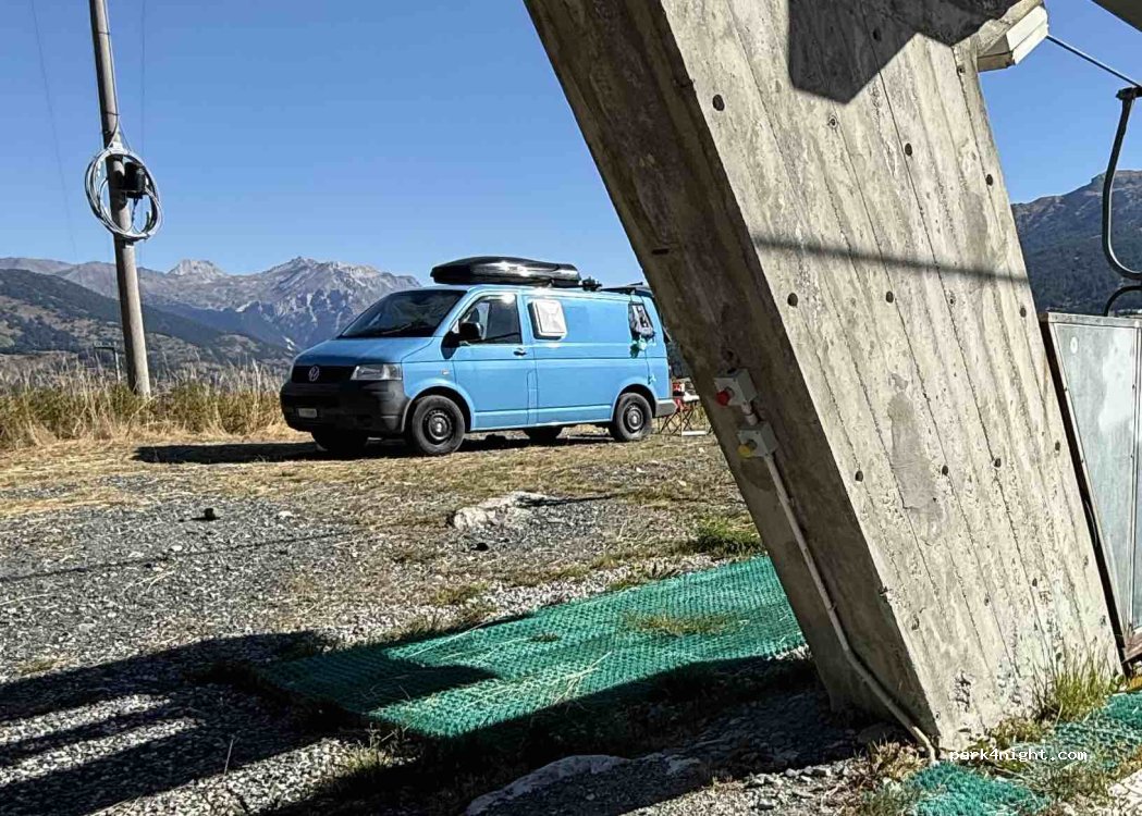 Super lieu très calme! Le spot est au pied d’une remontée mécanique qui ne fonctionnait pas lorsque nous sommes arrivés (station de ski fermée)! Pour y accéder, nous avons roulé au pas avec notre california van. Pas adapté pour les trop grands véhicules.