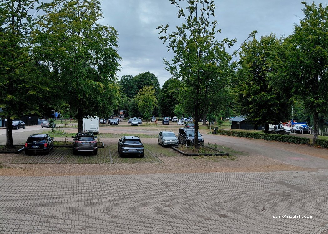 Det er en normal parkeringsplads, hvor der holder mange biler. Oplagt at holde hvis du vil en tur ind og se byen, men ikke til overnatning