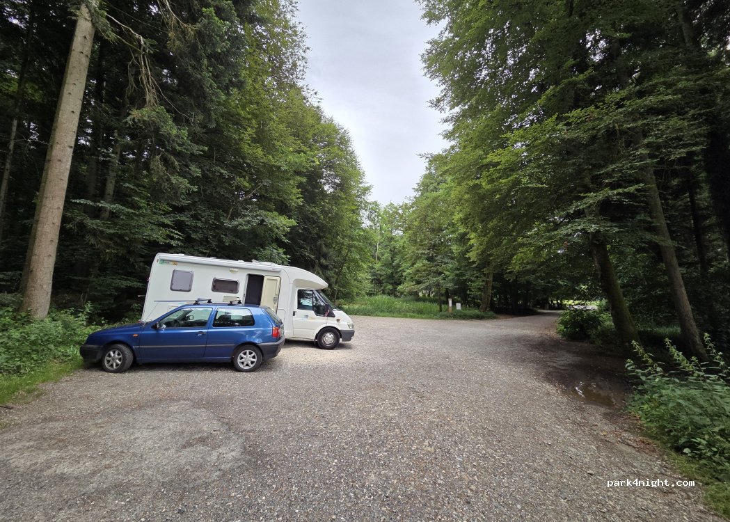 Schöner Platz am Wald, hier geht ein Trimm-Dich-Pfad los. Schön für einen Spaziergang. Viele Jogger und Leute mit Hund, hat sich aber niemand beschwert. Nachts kam die Polizei und hat ans Auto geklopft. Auf die Aussage hin, dass unser Baby geschrien hat und wir morgens direkt weiter fahren, konnten wir stehenbleiben. Es gibt Mülleimer, bitte hinterlasst es ordentlich