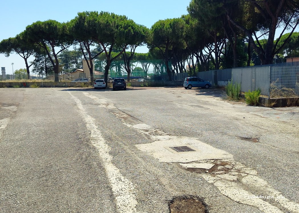 Parcheggio dello stadio comunale, parzialmente ombreggiato,fontana x carico acqua potabile gratuita.