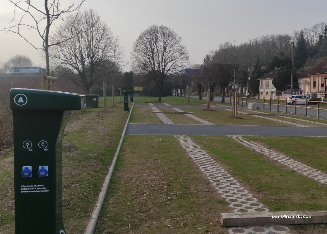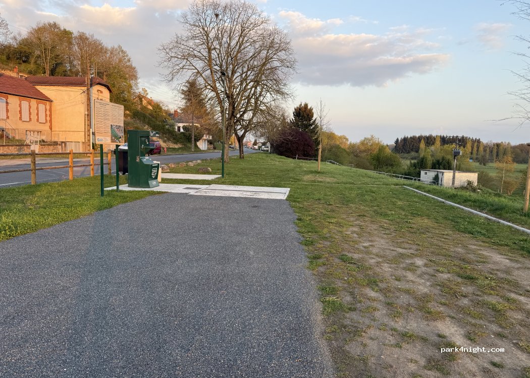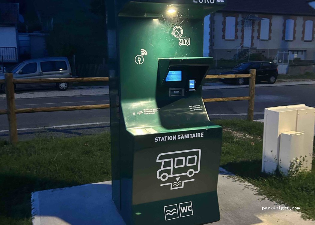 Lieu près de la route mais beaucoup de place borne flot bleu ne fonctionne pas aujourd’hui dommage Pour une soirée ça dépanne bien